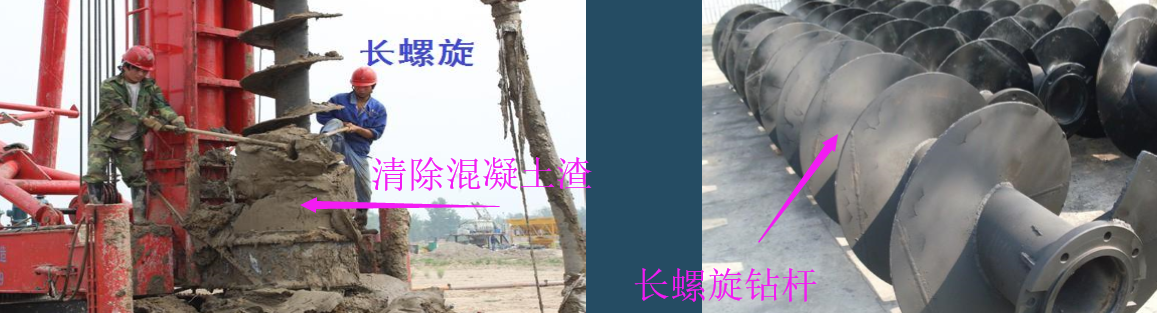 (3)钻至设计标高后,应先泵人混凝土并停顿10~20s,再缓慢提升钻杆。提钻速度应根据土层情况确定,并保证管内有一定高度的混凝土。