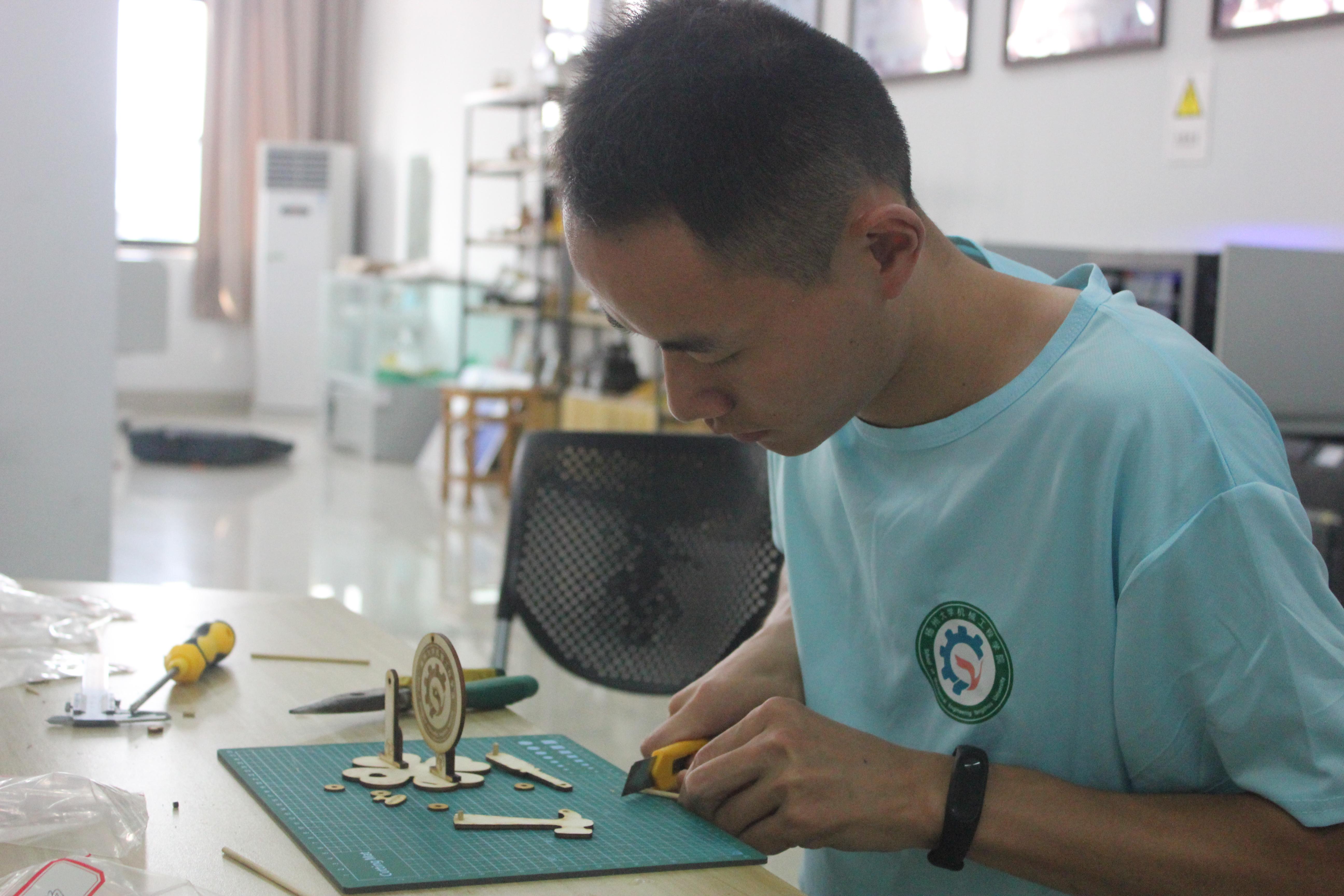 小礼物承温情,小机构可动心。徐佳伟是扬大机械工程学院科学与技术协会的会长,他很期待新生收到“小惊喜”时的神情,“激光雕刻技术是我们创新工场的一大特色,我们希望通过这特殊的‘六礼’,让他们意识到专业学习的重要性以及我们‘机械人’的创新思维。”扬州大学机械工程学院团委书记徐香翠老师谈起这“六礼”时表示,“新生可以通过接触不同的机构学习到专业知识,展现致知精神,他们亲自动手拼接具有专业特色的礼物,又体现了力行态度。”