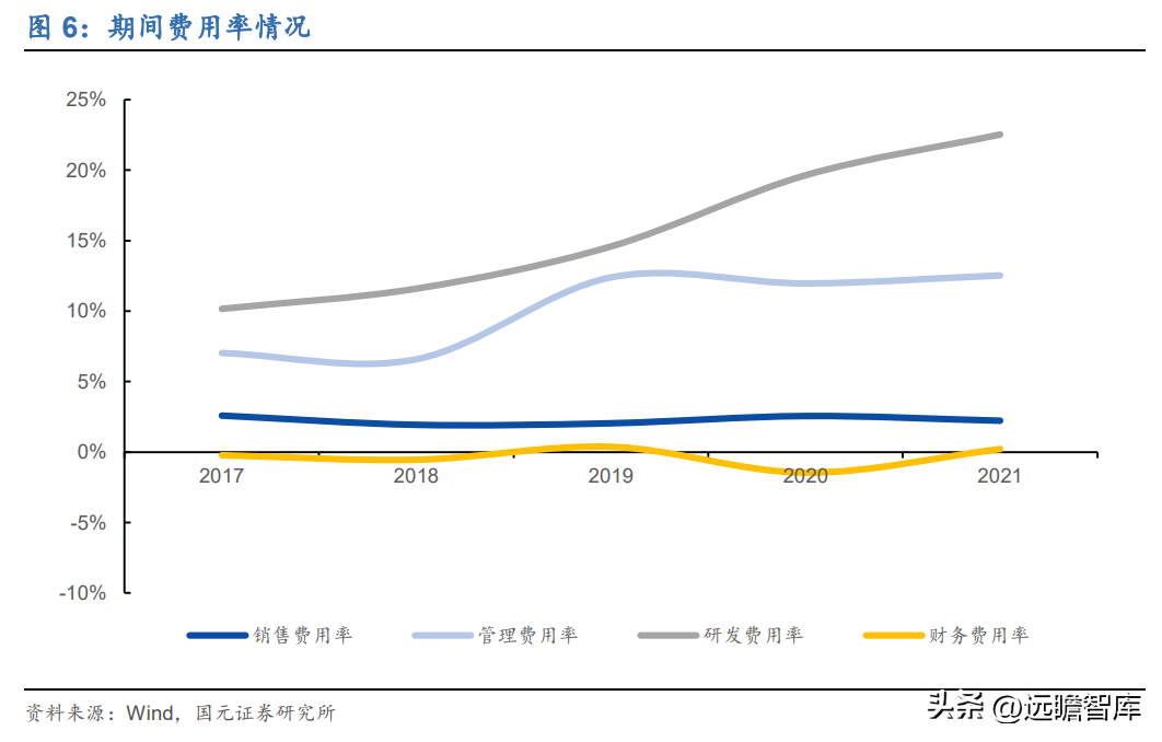 管理费用: 2017-2021年,公司管理费用分别为 0.11、0.12、0.26、0.24、0.30亿元,管理费用率分别为 7.03%、6.59%、12.39%、11.97%、12.53%。