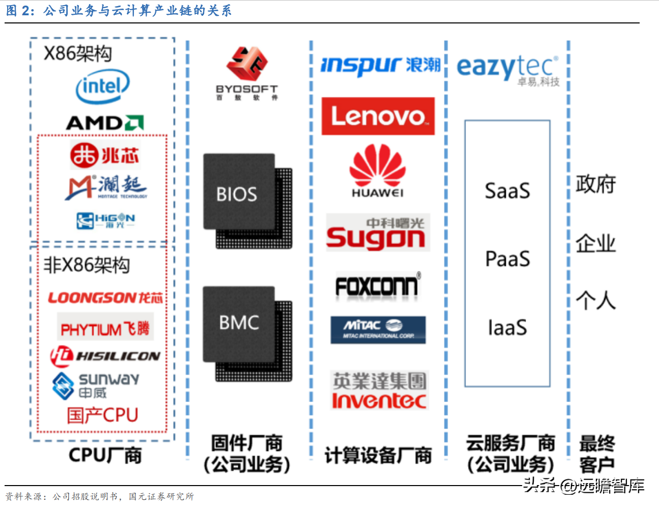 公司主营业务位于云计算产业链上,以自主知识产权的云计算设备核心固件 (BIOS/BMC)技术与云平台技术为依托开展业务。