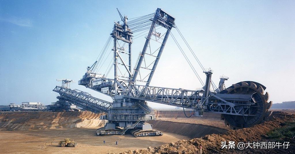 Bagger 293斗轮挖掘机非常大,需要五个人进行操作。它有18个巨大的挖斗,每天能够挖掘24万立方米的土地,该机器高96米,长225米,重14000吨。