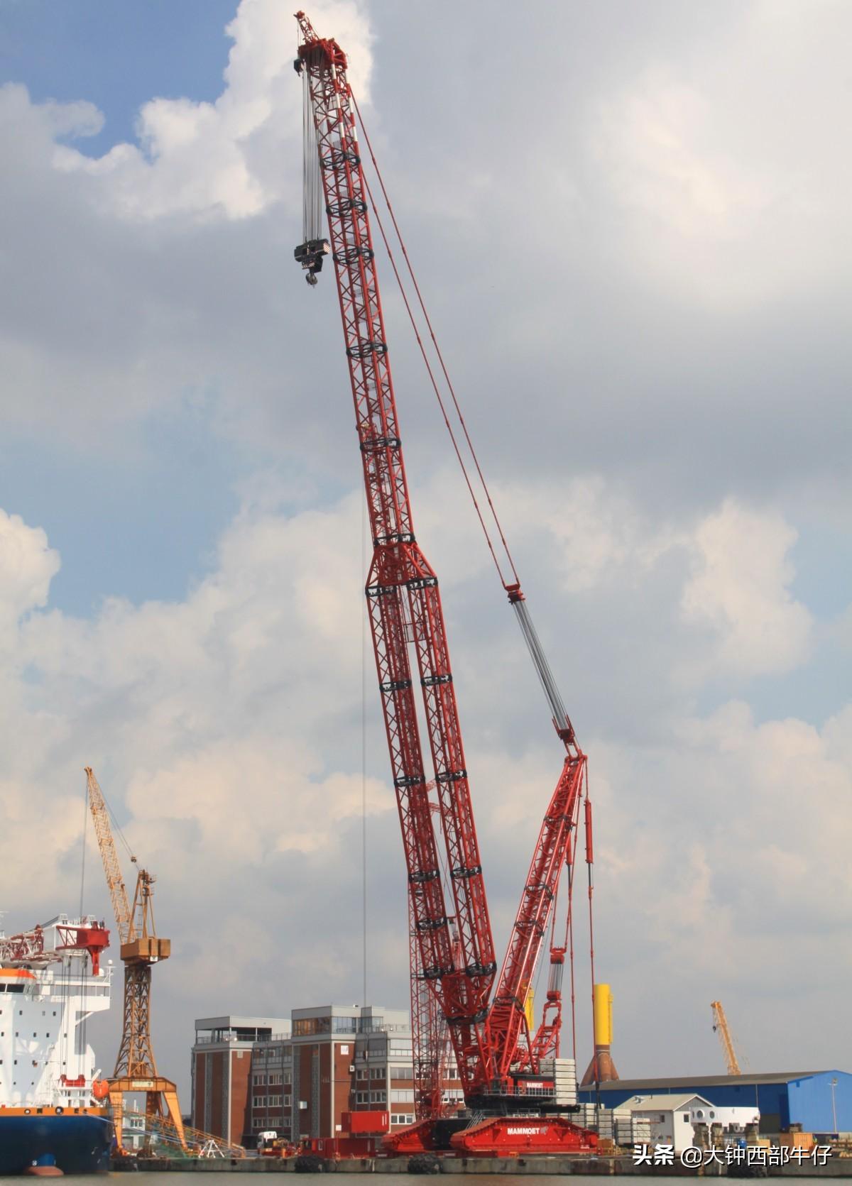 世界上最强大的履带起重机一次可装载3000吨,提升高度236米 最大限度,半径200米。 它的主要动臂是一个半足球场的长度,每一个钩形配重块达11吨-大约是普通家庭轿车重量的六倍!
