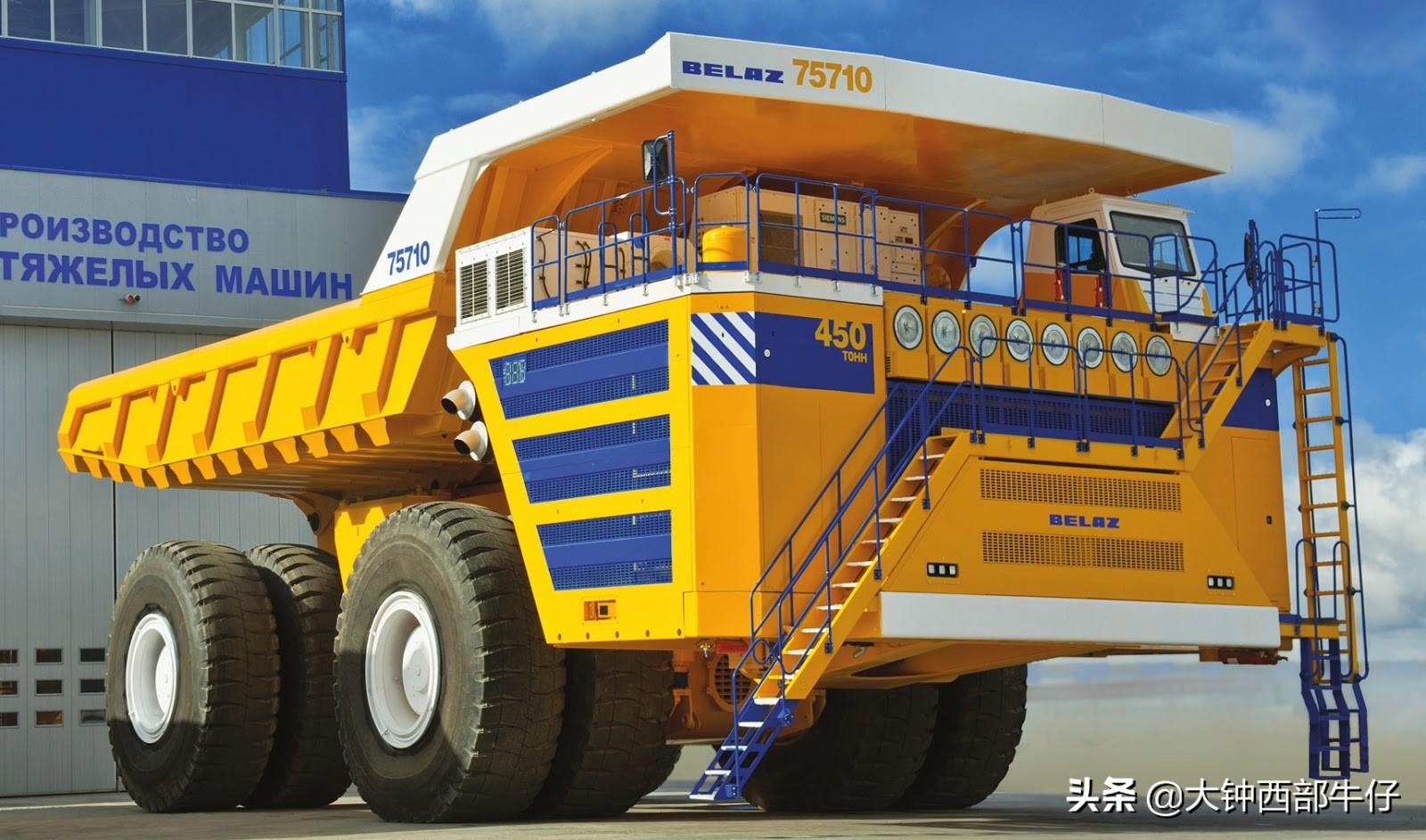 白俄罗斯制造的Belaz 75710旨在为俄罗斯广大的矿山提供服务,是世界上最大的自卸车。它主要存在于东欧和俄罗斯,其有效载荷高达496吨。75710重360吨,长20.6米,高度为8.17 米,宽度为10.6 米。其八个超大米其林轮胎(最高4米)可达到每小时64公里的速度,75710的16缸涡轮增压柴油发动机每100公里油耗达1300升燃油。整车售价600万美元。
