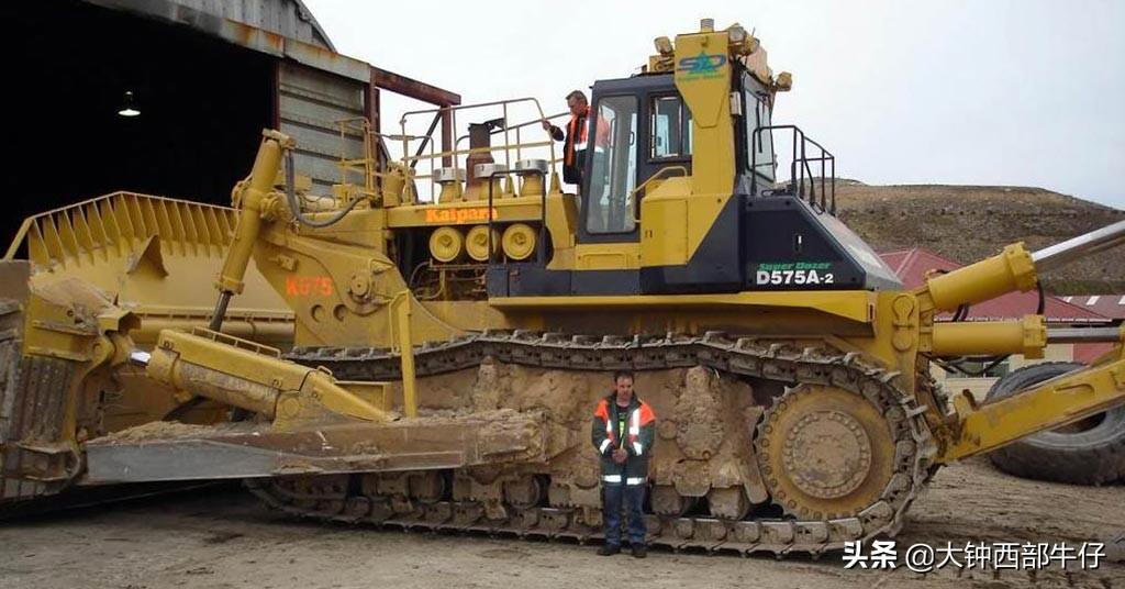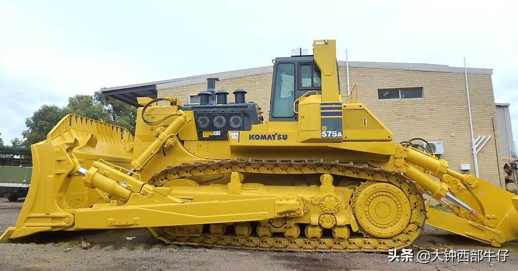 小松D575A超级推土机是一台巨大的土方机械,长约11米,宽约7米,高约5米。它的重量为152吨,具有推土扇面宽度超过7米,高度超过3米。每遍可移动69立方米的物料,这相当于六辆半混凝土搅拌车的桶体积!