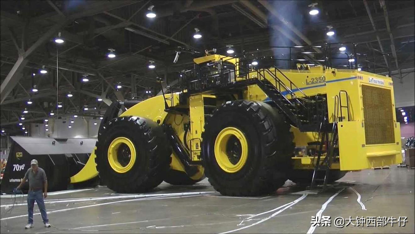 L-2350轮式装载机重272吨,是一台装载机中的超级野兽,它的大型铁斗能够一次装载80吨物料。它的举升高度为7米,配备16缸65升涡轮增压发动机,输出功率为1715 kW,是目前装载机中最大的装载机。