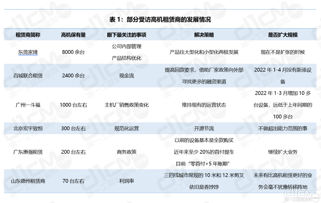表1:部分受访高机租赁商的发展情况