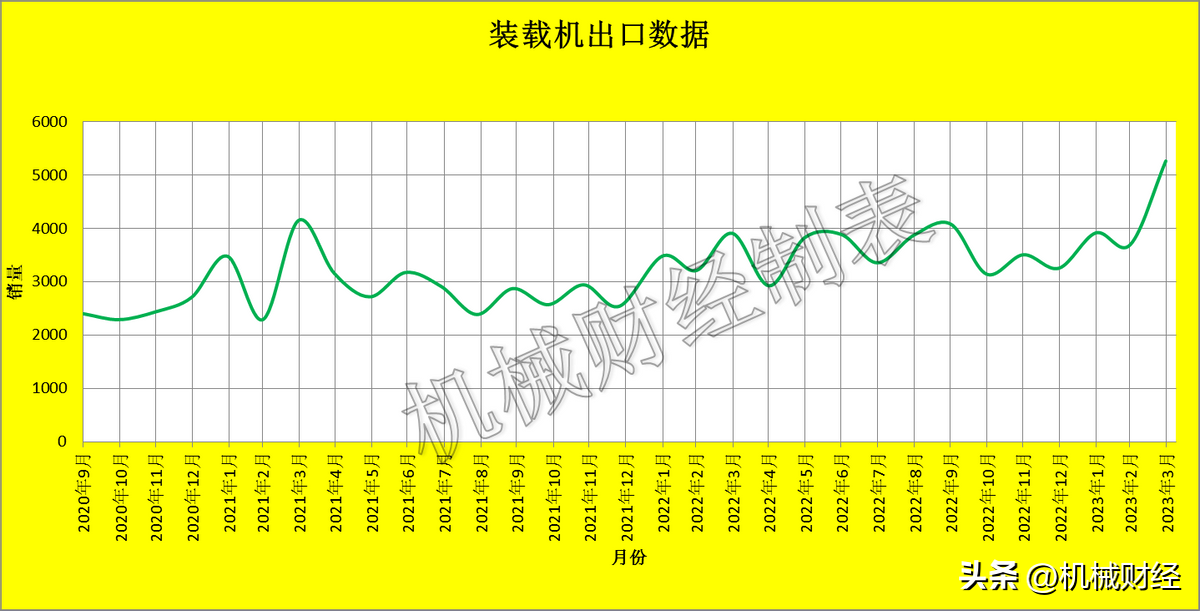 2023年3月各类装载机出口销量5267台,同比增长34.7%。