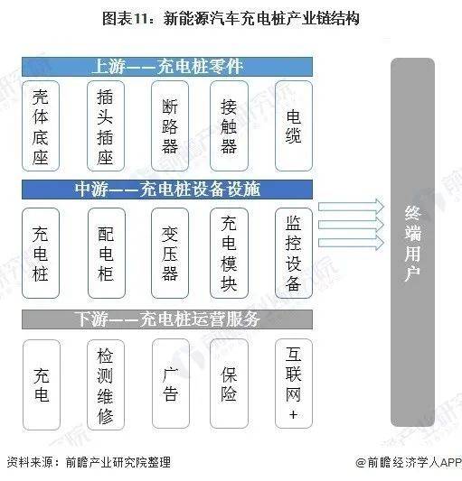 充电桩全产业链涉及到上游充电桩及充电站建设及运营所需设备的生产商,包括充电桩和充电站的额壳体、底座、线缆等主要材料供应企业和充电设备生产商;充电桩产业链的中游为充电运营商,负责新时期充电桩的运营,充电桩下游的整体解决方案商,能够统筹上下游及客户需求,合理布提供整体的运营方案。