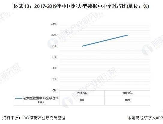 大数据中心:观察中国IDC市场,2017年的在用数据中心达1844个较上年增长12.4%,其中超大型数据中心36个较上年增长125%,大型166个较上年增长52%。与此同时,中国超大型数据中心数量占全球比由2017年的8%提升至2019年的10%。中国IDC数量增长速度明显快于全球。