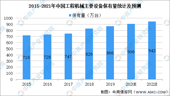 随着全球技术发展,工业自动化应用的行业日益增多,自动化、机械化在工业领域的影响不断加深,更多的工程机械在各生产领域得到应用。工业制造与工业自动化水平对国家发展与国民经济有着举足轻重的影响,数据显示,2015-2019年我国工程机械主要设备保有量从718万台增至866万台,复合年增长率为4.8%,预计在2021年工程机械的保有量将达到942万台。