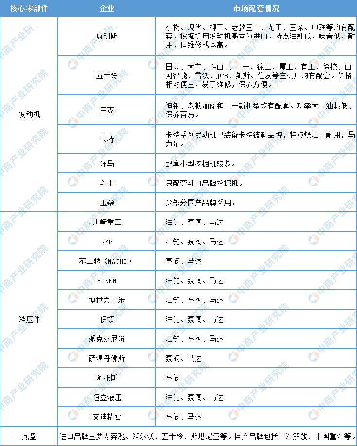 发动机、液压系统作为各类工程机械的核心零部件,占生产成本比重达45%左右。目前,工程机械设备中的核心零部件主要来自外资品牌,同时国产品牌市场份额也在提升。