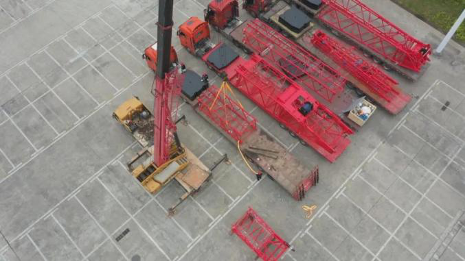 5月16日上午,三一重工携带履带式起重机,正式进场布展。这台“巨无霸”起重器主臂长84米,最大起重量为350吨,可同时吊起7辆99式主战坦克。它的零部件动用了12台大型货车运输,现场组装也需要耗时两天。