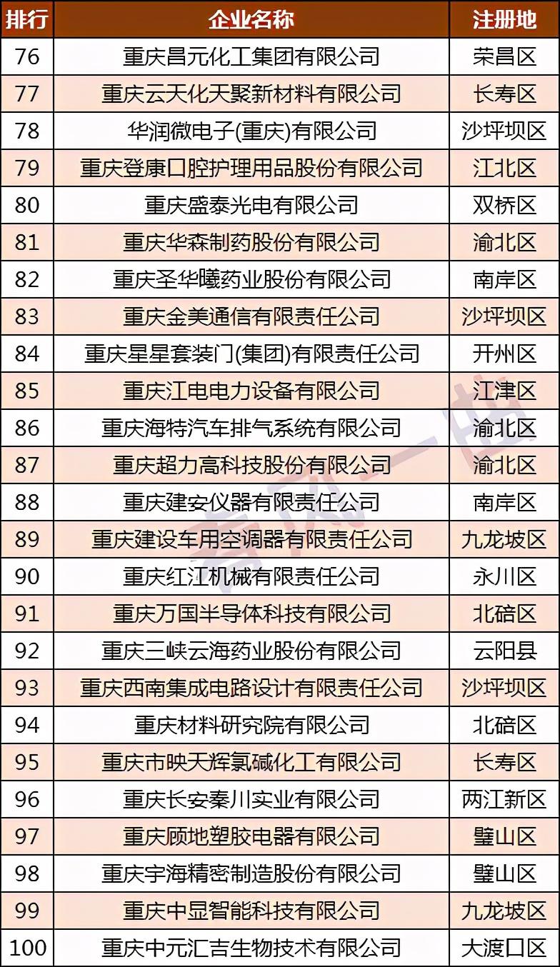 重庆盛泰光电有限公司排名第80,重庆华森制药股份有限公司排名第81;