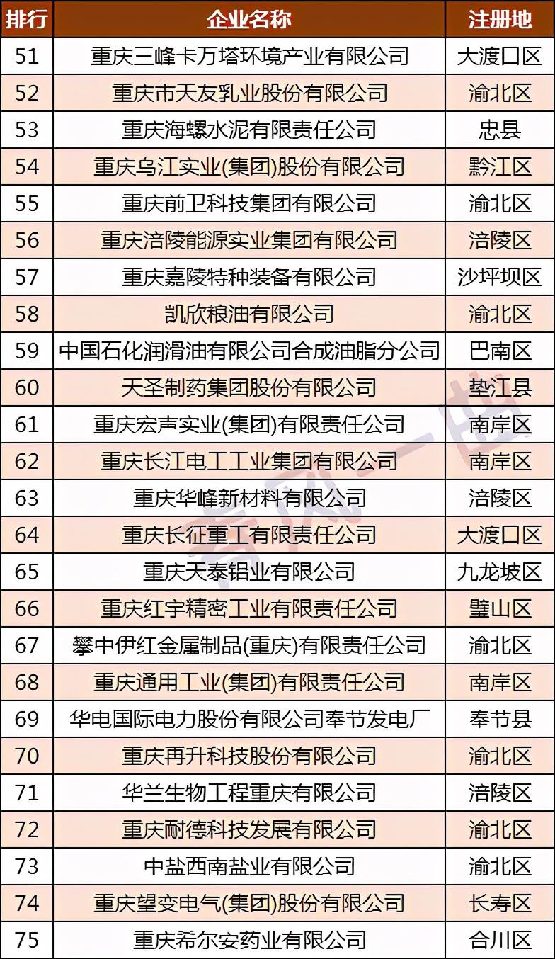 巴斯夫聚氨酯(重庆)有限公司排名第40,重庆啤酒股份有限公司排名第41;