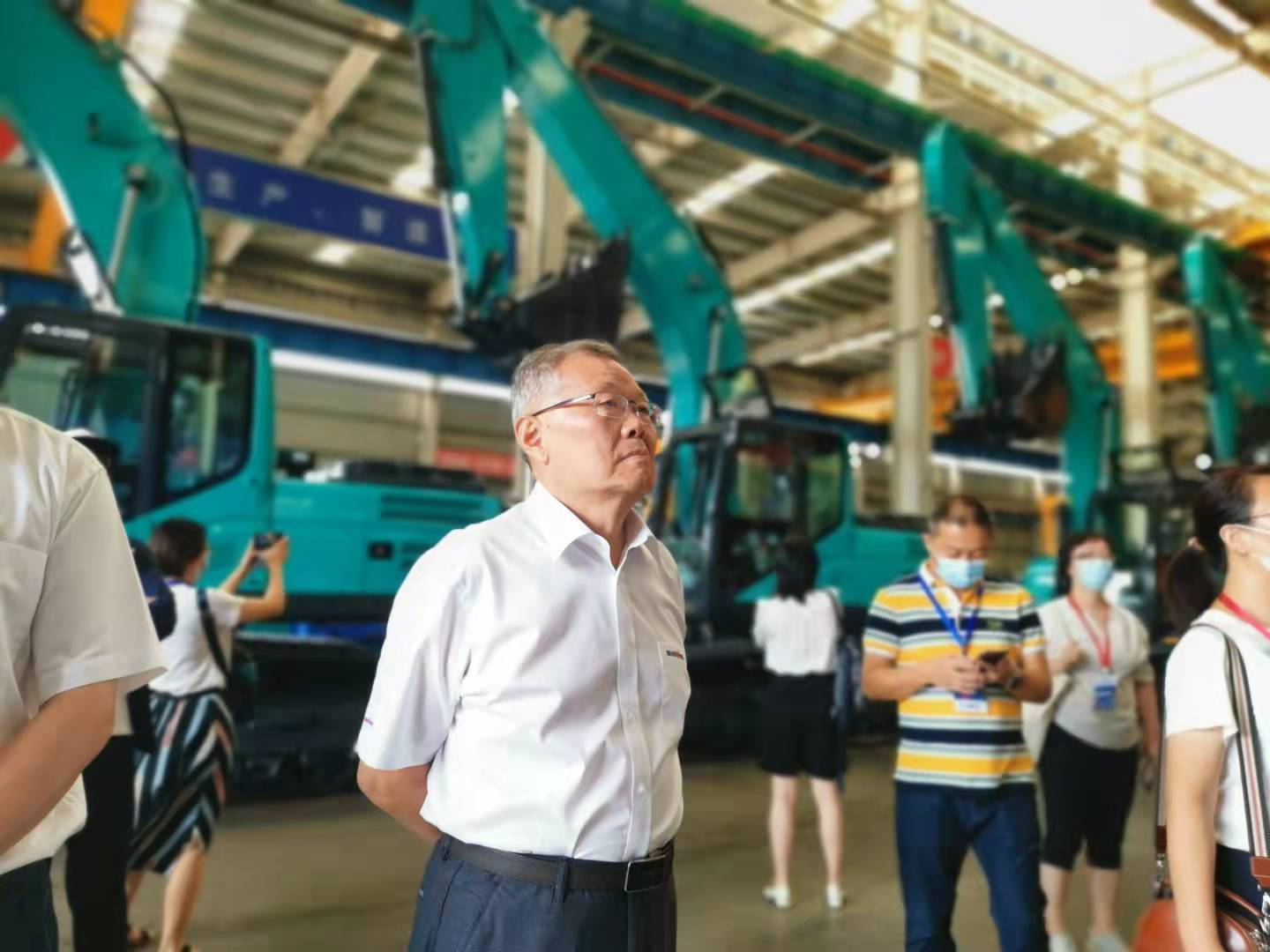 9月16日上午,长沙经开区山河智能股份有限公司中挖装配车间的生产线上,工作人员在自动化设备中穿梭忙碌。巨大的吊扇,将闷热的空气及时排出,使厂房清爽舒适。75岁的山河智能股份有限公司董事长何清华精神矍铄地接待着来访者。