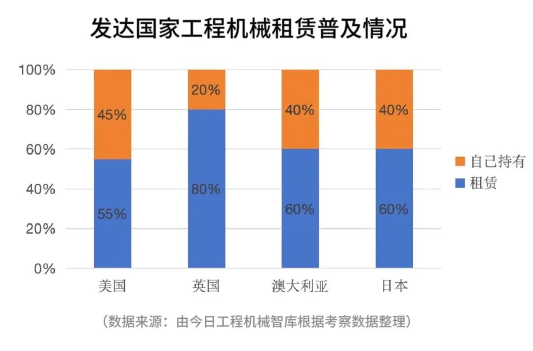 在工业化进程中,发达国家已经积累了很多经验和教训。通过参考发达国家工程机械行业的发展情况,有助于我们了解行业发展的一般规律和趋势,从而更好地应对未来的挑战。在对发达国家工程机械租赁普及情况的调研中,不难发现租赁的市场渗透率占比在不断上涨。在工程数量逐渐趋于平缓的当下,这种模式不仅可以缓解企业的资金压力,提高设备利用率,降低维护成本,还可以促进机械更新换代。因此,租赁已经成为欧美等发达国家工程机械行业的必然发展趋势。首先,我国城镇化率仍有较大提升空间,加上市场现有存量的更新换代需求,我国工程机械市场还有较大的需求潜力。相较于直接购买,工程机械租赁更为灵活且成本更低,可以减少企业固定资产的投资额度。因此,越来越多的企业开始选择租赁工程机械,尤其是通用性工程机械来满足其施工需求,以应对目前的碎片化工程时代。