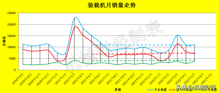 从5月份的数据看,装载机的销量相对挖掘机要好一些,5月份装载机销量出现了趋于稳定的势头,这对稳定2022年全年销量会有一定帮助。