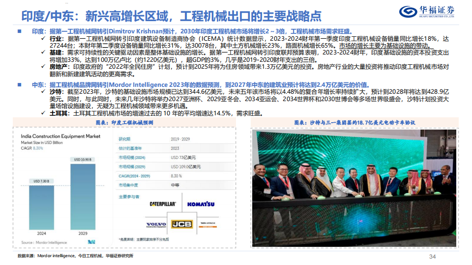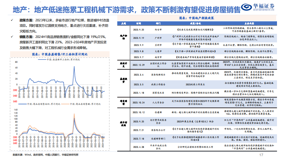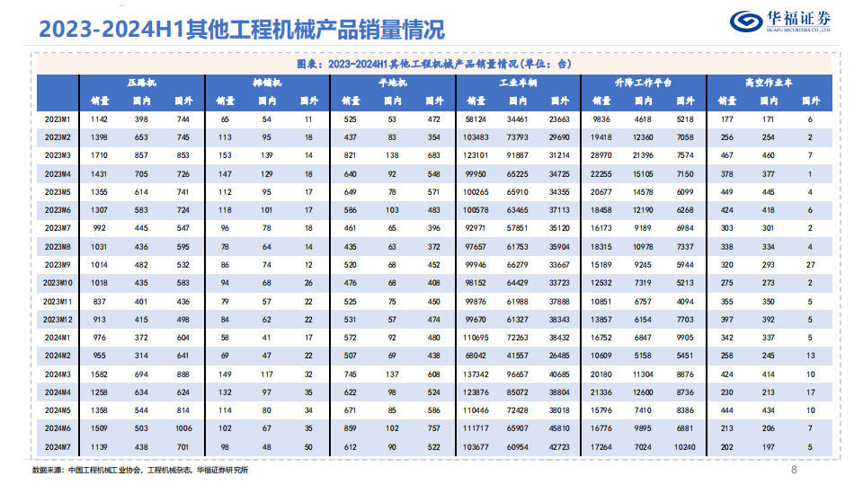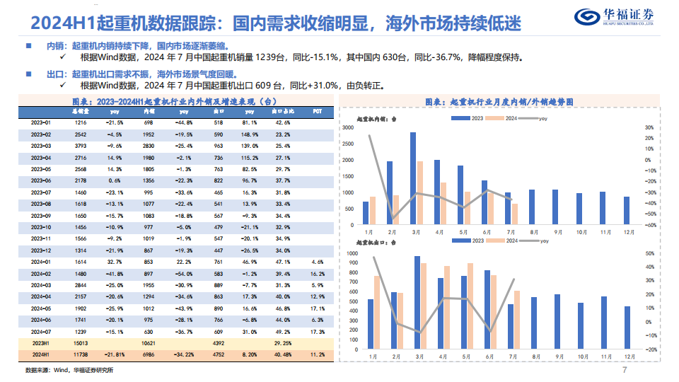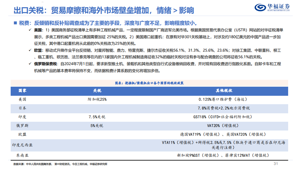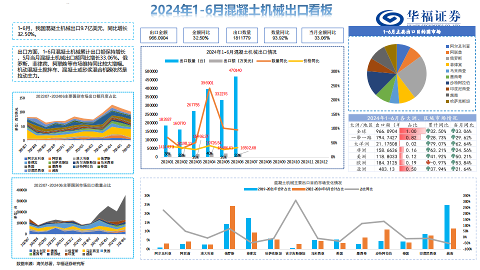 4\ 海外需求:2024年1-6月我国工程机械整机+零部件出口金额258.37亿美元,同比增长3.38%,出口增速逐年回落,关注出海结构性机会。