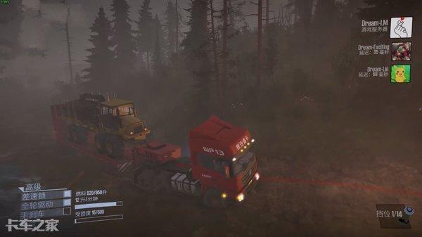 在泥泞山林里的原木运输道路一定不会让你一帆风顺,这个游戏好玩的地方就是翻车、陷车了还能自救,开着吊车救援或者用车上自带的绞盘进行自救,在联机模式下,同伴的车陷车、翻车了,都可以用绞盘帮忙施救。