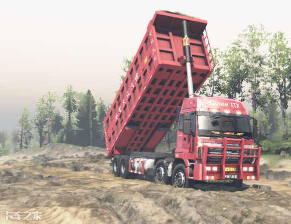 前四后八全轮驱动,上装搭配矩形大载自卸车厢,运载的木材也改为砂石,并且还有自卸功能,不得不说这些MOD制作高手,确实又进一步满足我们心中的需求。